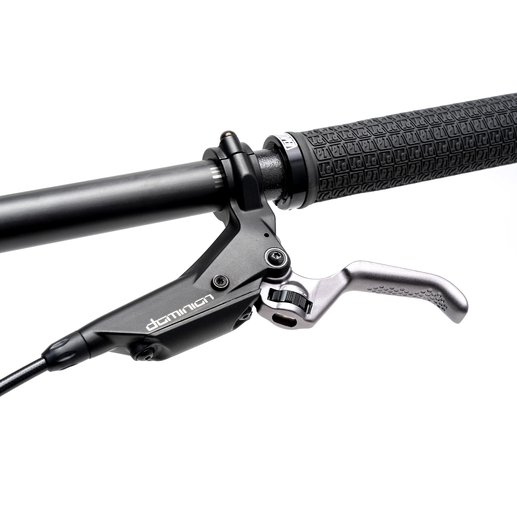 The focus of the brake lever is to achieve the highest possible braking force with little finger force. This is to avoid wasting power unnecessarily during hard braking. In order to allow for a strong grip, the master cylinder is factory tuned for the lowest possible idle travel. The lever of the Dominion is robustly designed and allows a tool-free adjustment of the lever width.