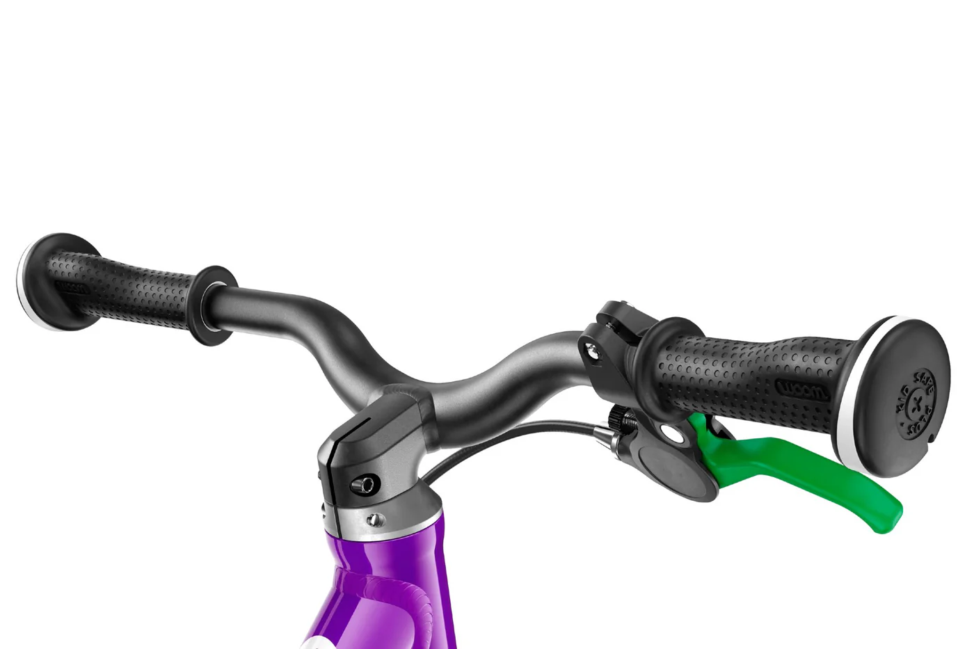 Kapeammat kädensijat ja ohjaustangon kavennetut päät on suunniteltu pienille käsille, jotta ohjaaminen tuntuu luontevalta ja turvalliselta. Rajoitettu ohjauskulma estää etupyörän yliohjautumisen ja vähentää kaatumisriskiä.